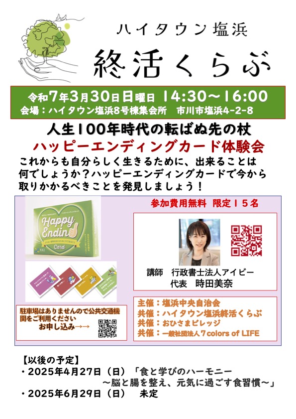 会場:ハイタウン塩浜8号棟集会所 市川市塩浜4-2-8